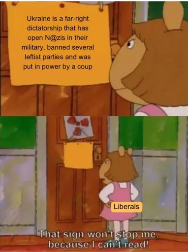 To the downvoters proudly displaying your fash-fash, please add your reply here and tell us why or how the first panel is incorrect. Don’t drift away into telling us what Russia is or isn’t. Don’t just tell us what Ukraine isn’t. Add your sources.