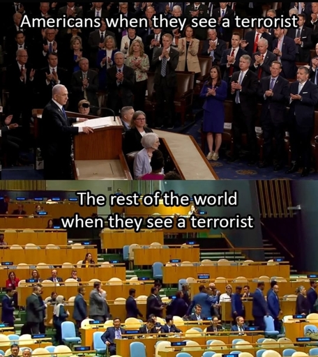 That’s not all Americans just the people they pay to represent them. Also I think the other half remained seated, or refused to show up.